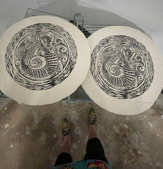 The Mermaid and Her Magic Bicycle (Woodcut Print)